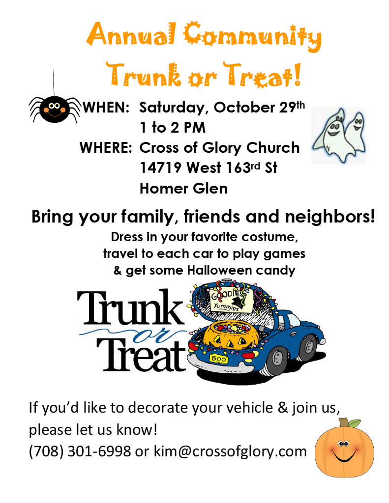 Bring your family, friends and neighbors. Dress in your favorite costume, travel to each car to play games & get some Halloween candy!